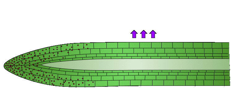 Auxin plays a key role here, too! When light shines on one side of a plant, auxin moves to the shaded side, causing those cells to grow longer. This uneven growth makes the plant bend toward the light.